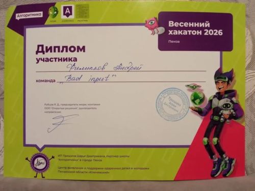 Ученик 6 класса Андрей Филиппов Центра дистанционного образования принял участие в весеннем ХАКАТОНЕ 2026, который проходил в Центре « Ключевский».