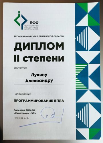 По результатом Александру вручен 🥈Диплом II степени в номинации "Программирование БПЛА".